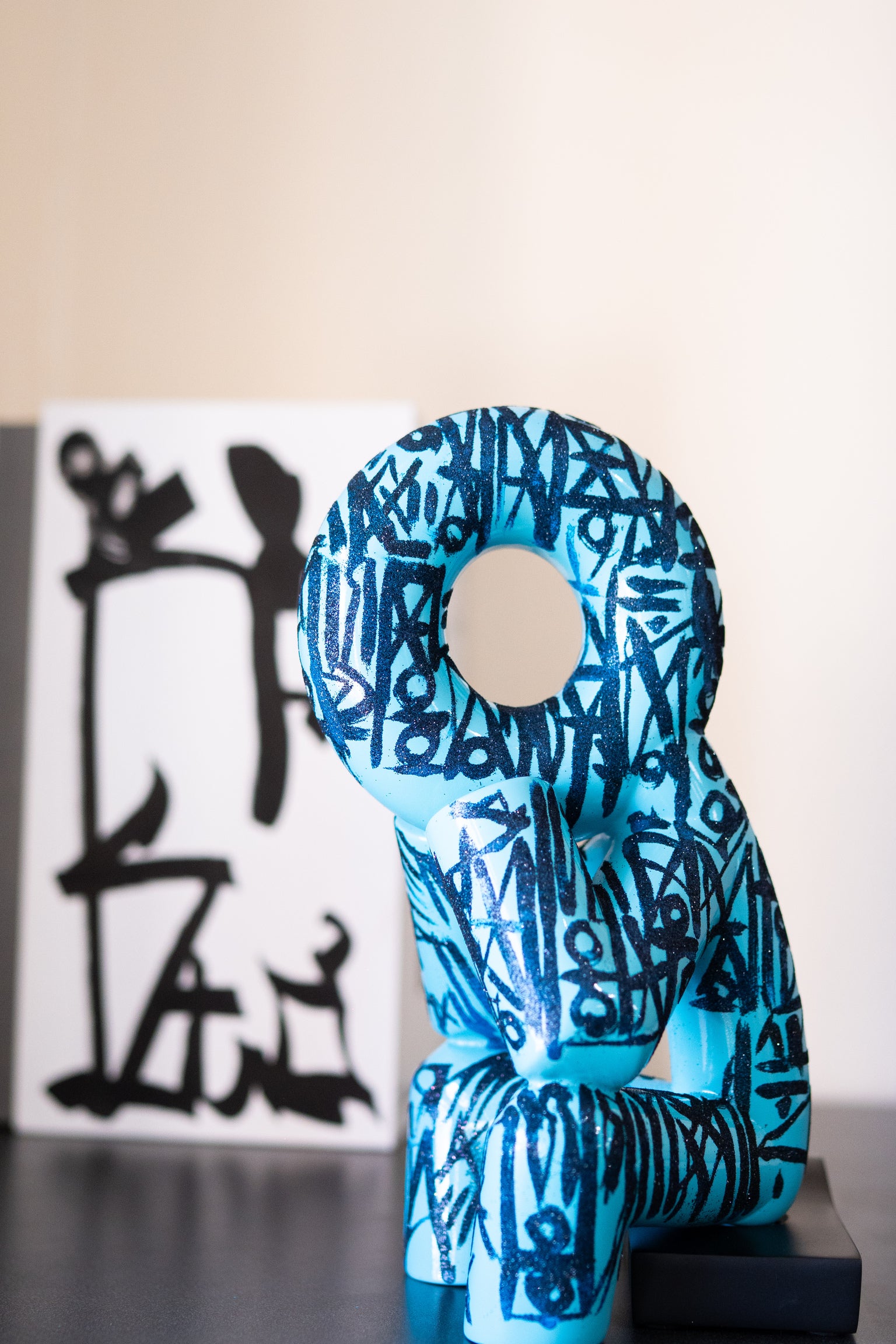 Condes’ sculptural form becomes a vessel for RETNA’s calligraphic energy, creating powerful, sculptural statements that honor both tradition and innovation.