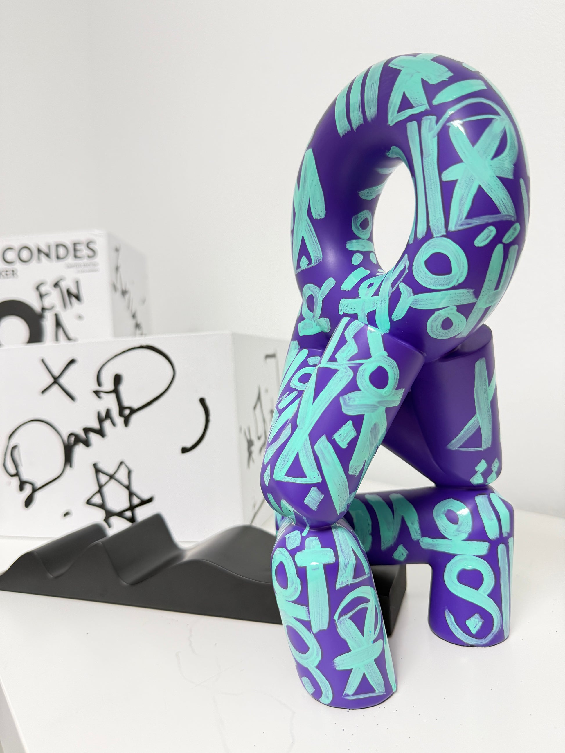Condes’ sculptural form becomes a vessel for RETNA’s calligraphic energy, creating powerful, sculptural statements that honor both tradition and innovation.